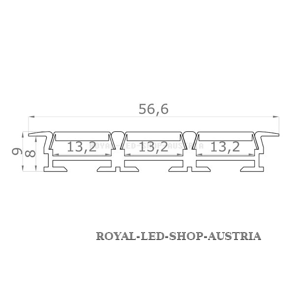 für Innen- und Außenbereich, Montageprofil aus eloxiertem Aluminium 3-reihig, ohne Abdeckung oder Zubehör, geringe Höhe von 9mm, Abdeckung schliesst bündig mit Oberkante ab. Für Flexbandbreite: max. 13,2mm ( 1 Stück = 2 Meter )
