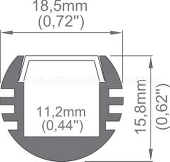 Rundprofil aus eloxiertem Aluminium, ohne Abdeckung oder Zubehör, seitlich gerillt, Innenmass Breite: 11,2mm, Abdeckung schliesst bündig mit Oberkante ab. ( 1 Stück = 2 Meter )