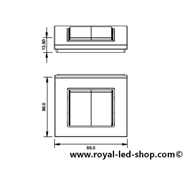 Dimmspezifikation: Single Color Controller, Frequenz: 434 Mhz, 868MHz, single color, 2 Zonen Wand Controller einlernbar auf alle Sys-One Steuerungen.